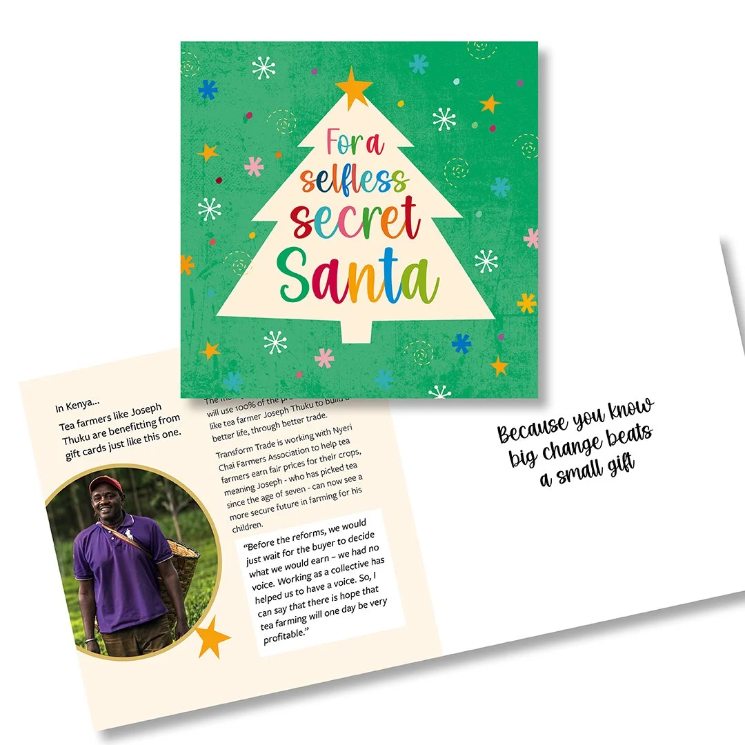 Gifts for Life cards are available as both physical cards and e-cards. Each card features a story from a farmer or artisan we’ve worked with, plus a blank space for you to write your own greeting.