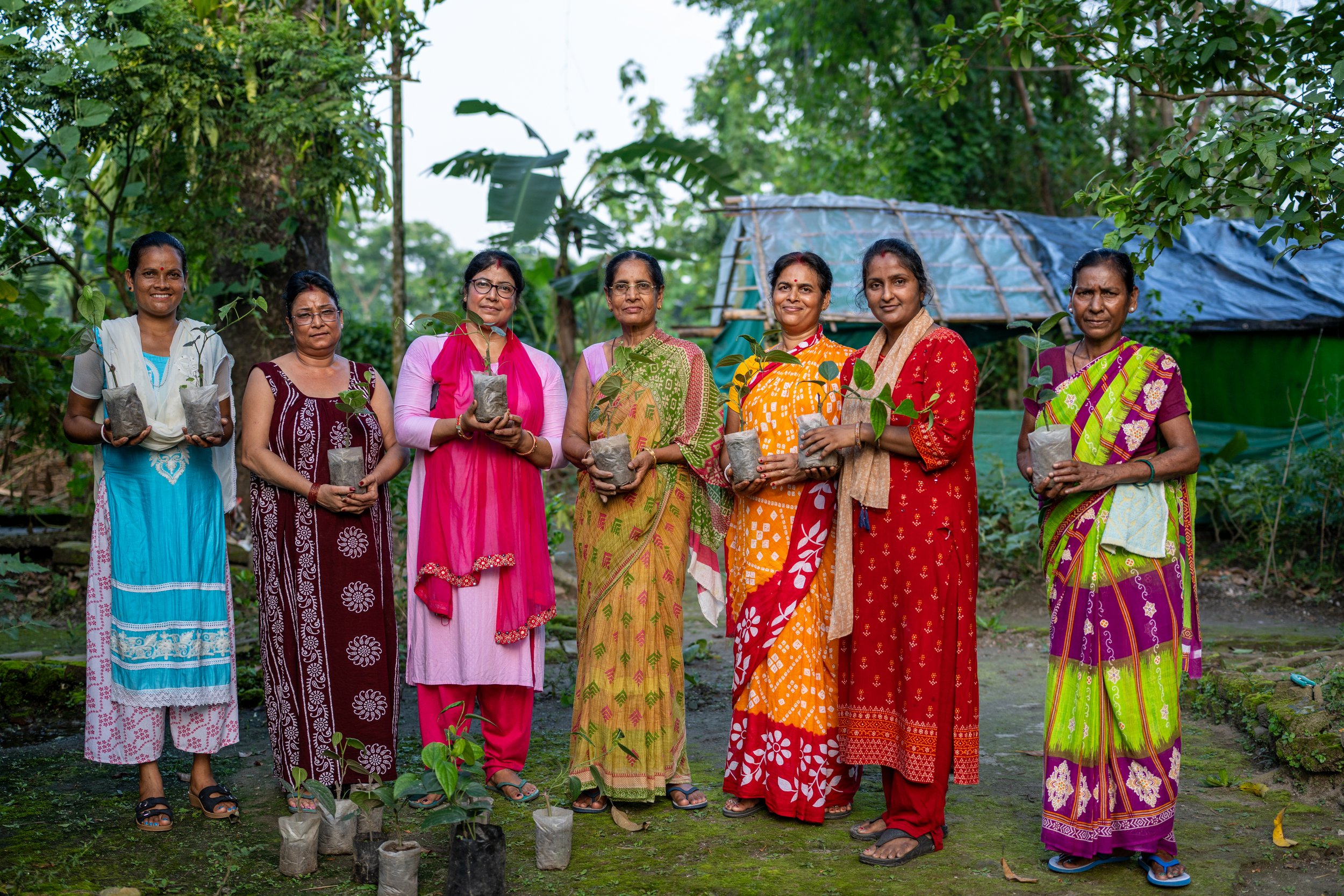 Members of a tea growers group in Assam, India, at their tea sapling nursery.